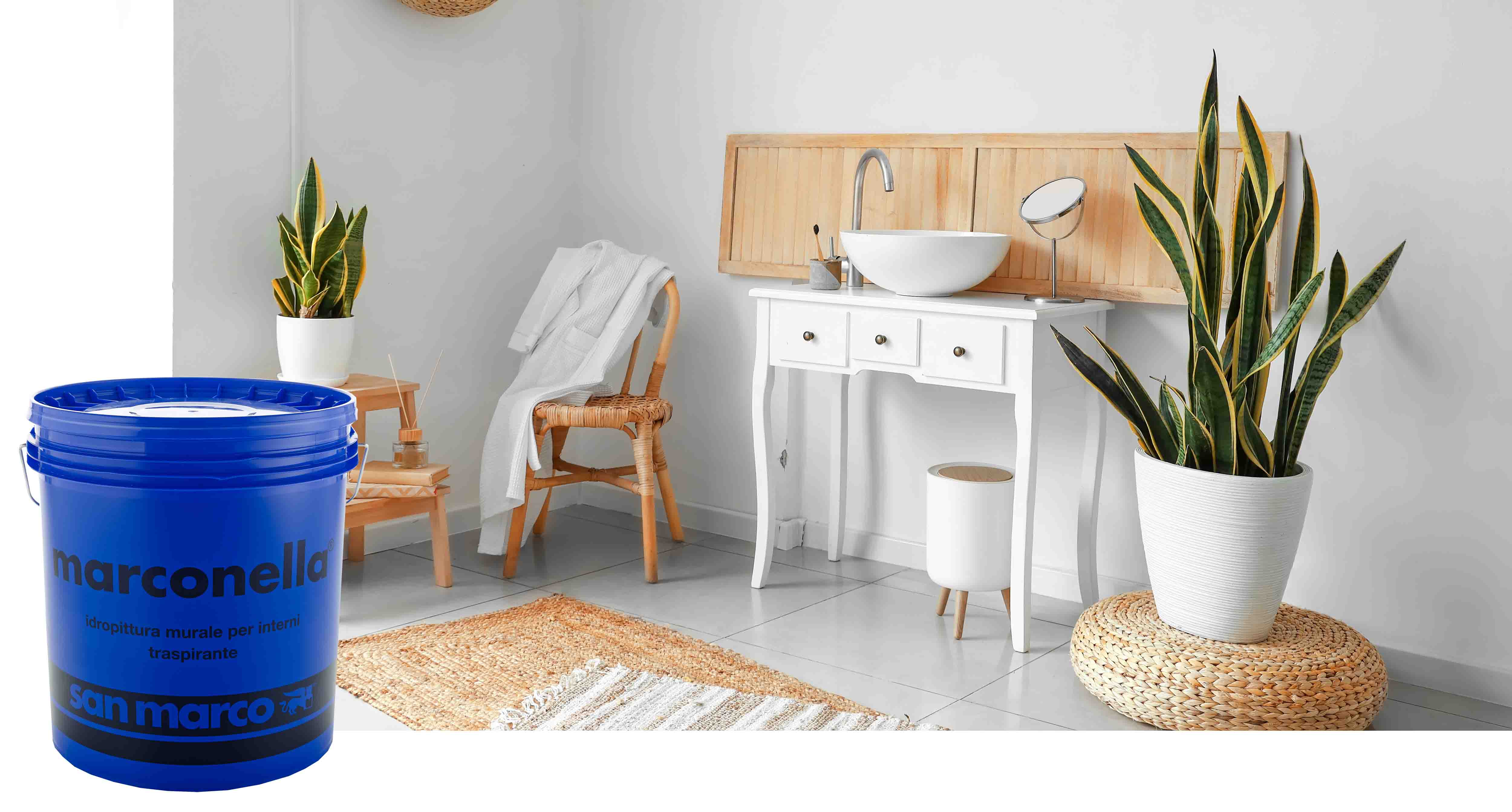 Marconella is a highly breathable professional paint with good covering power. A super-breathable interior paint that is easy to apply by both brush and roller, and quick-drying (30 minutes to the touch and overcoatable for the second coat after only 5 hours).