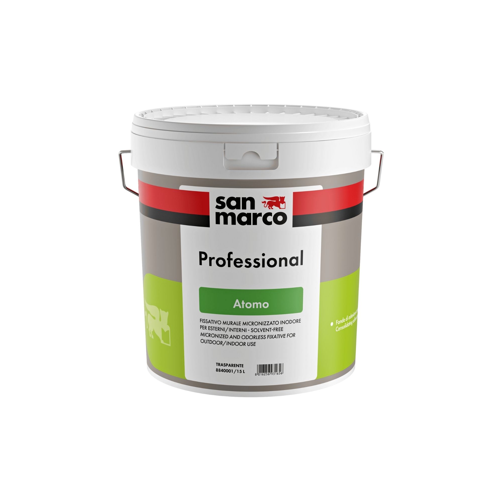ATOMO improves cohesion and evens the absorption of the support surface, creating the ideal anchor for subsequent paint layers, isolating them from the alkaline environment typical of concrete and similar surfaces.