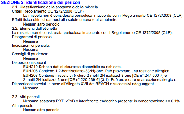 EUH208 Contains reaction mass of 5-chloro-2-methyl-2H-isothiazol-3-one and 2-methyl-2H-isothiazol-3-one (3:1). May produce an allergic reaction.